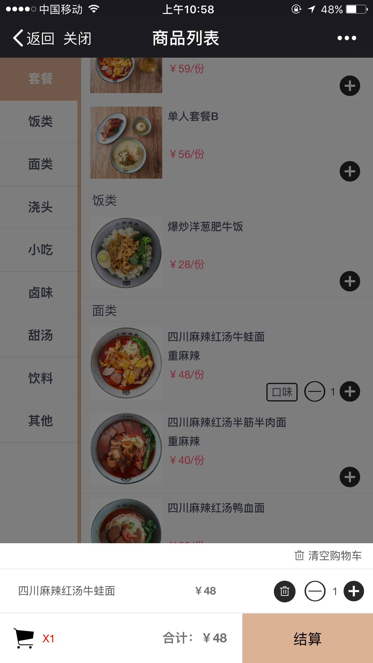 微信点餐系统,支持微信点餐、结算,会员注册开通,可选择数量、口味